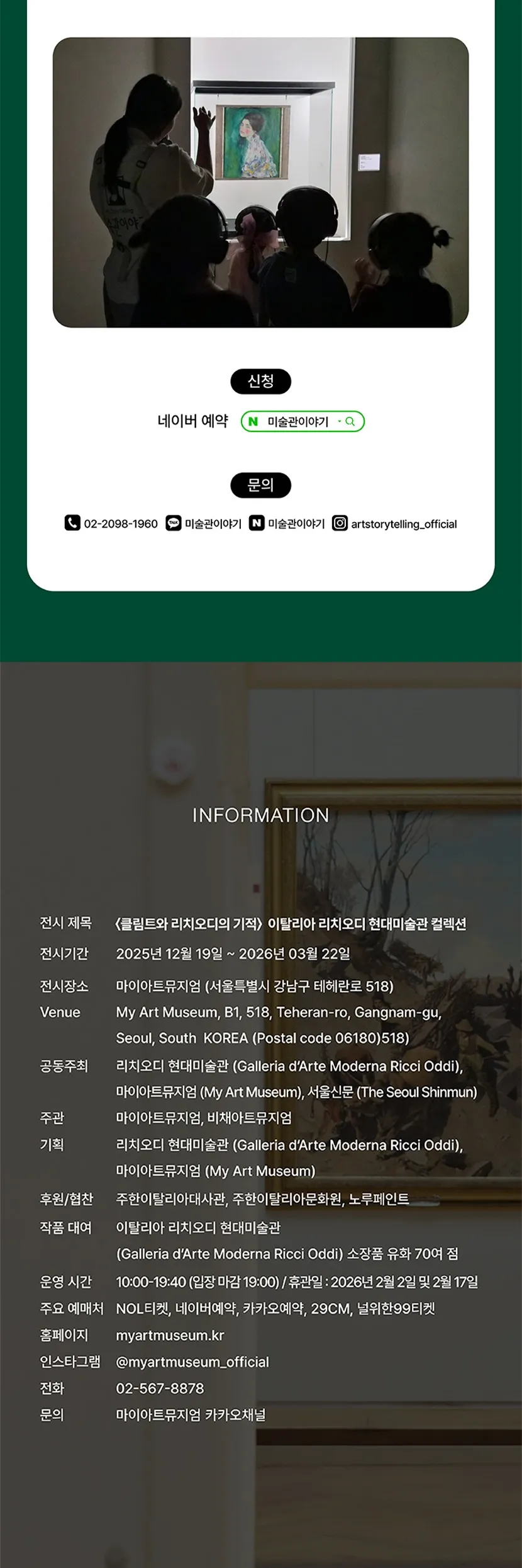 - 전시 및 도슨트 공지사항은 마이아트뮤지엄 인스타그램 및 홈페이지에서 확인하실 수 있습니다.