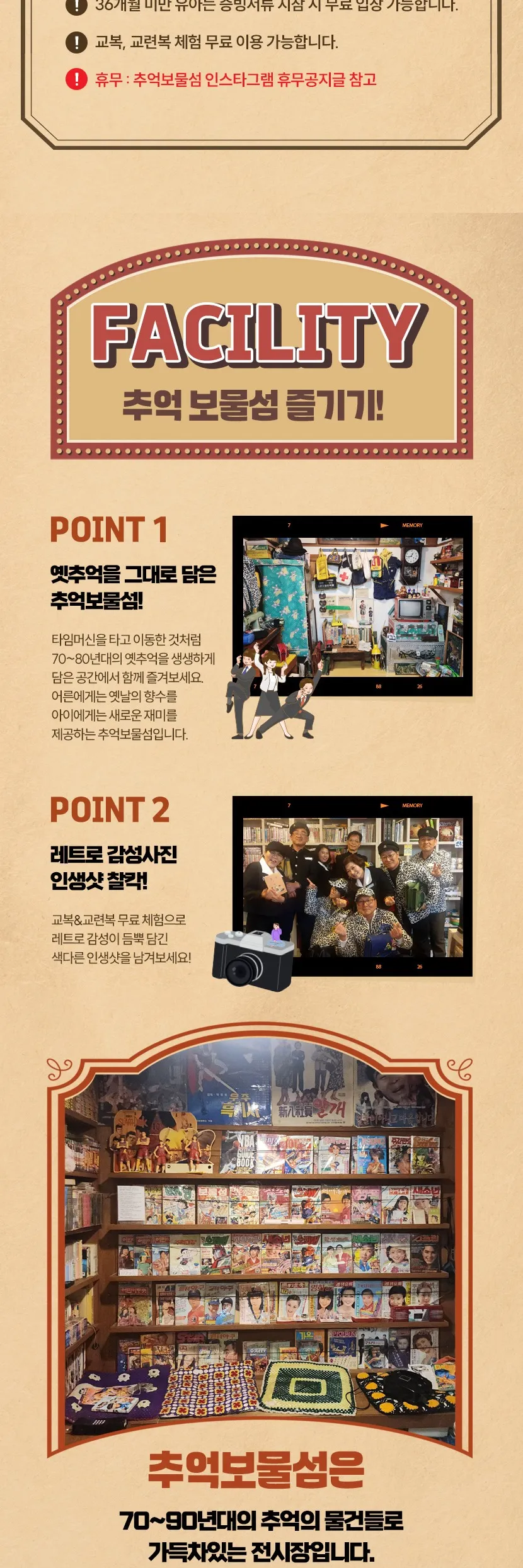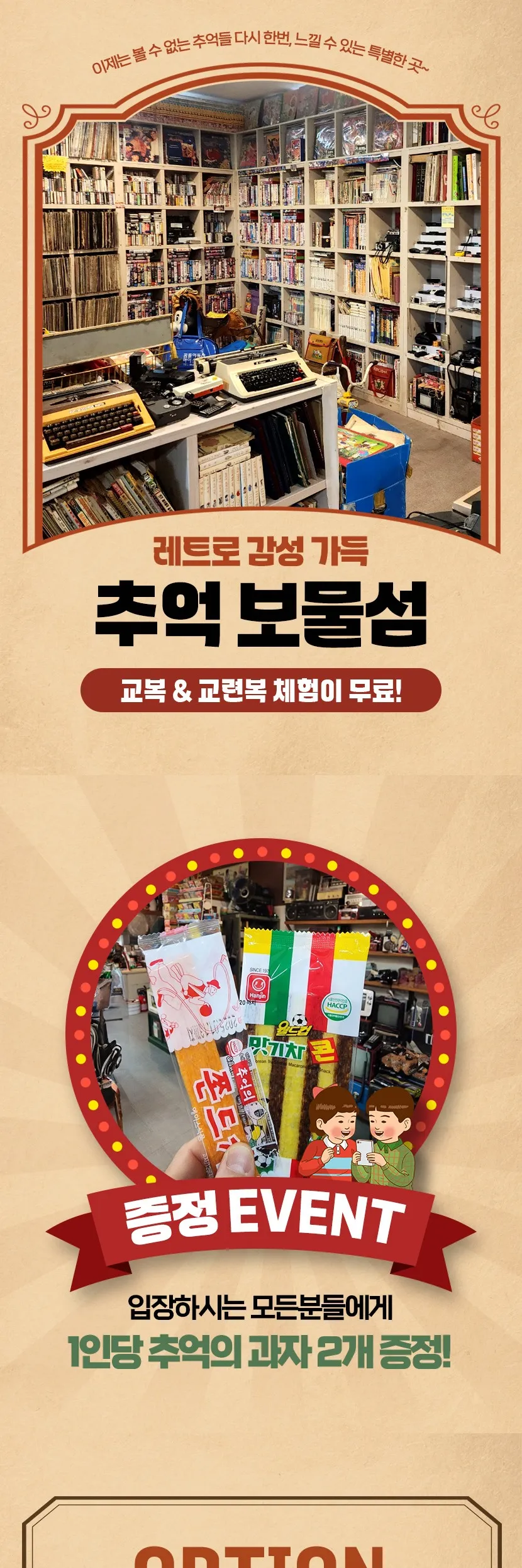 - 본 상품을 이용하시는 모든 분들에게 1인 당 추억의 과자 2개 증정됩니다.