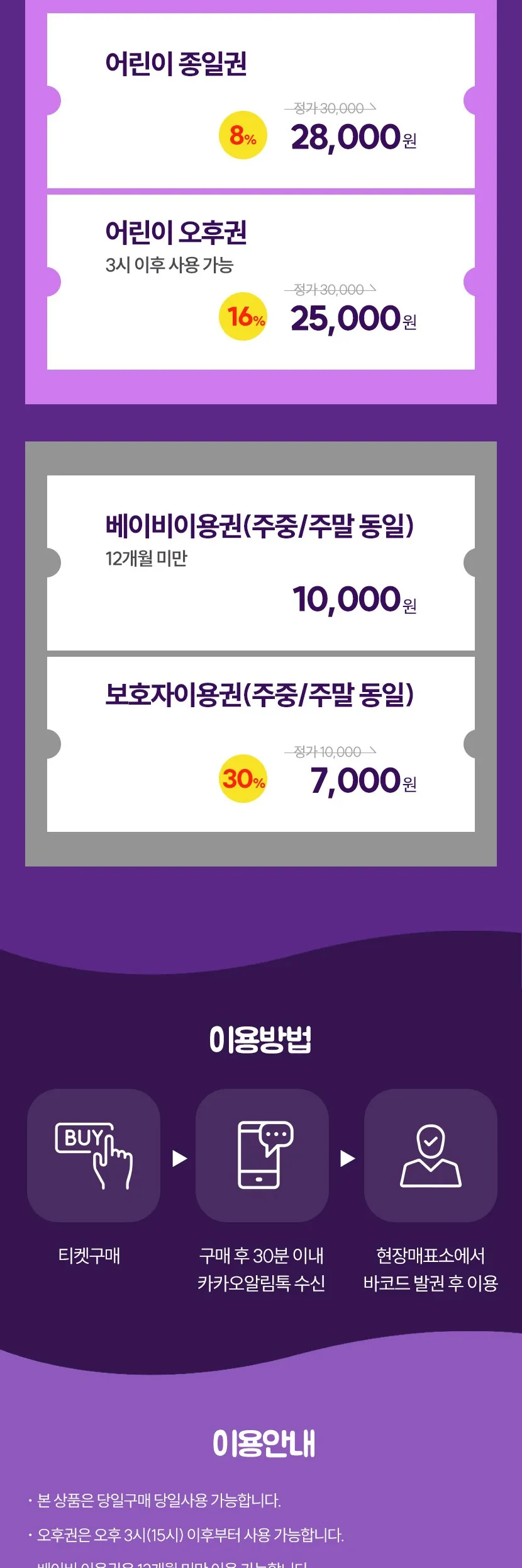 - 오후권 : 오후 3시(15시) 이후 사용 가능 합니다.