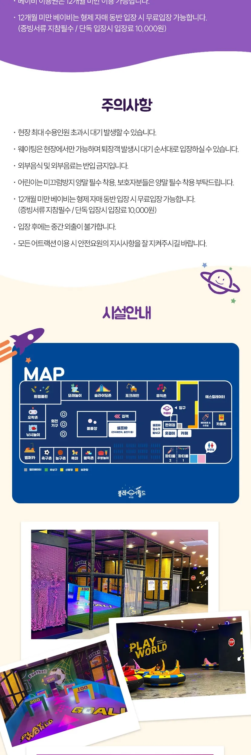 - 12개월 미만 베이비는 형제 자매 동반 입장 시 무료입장 가능합니다.