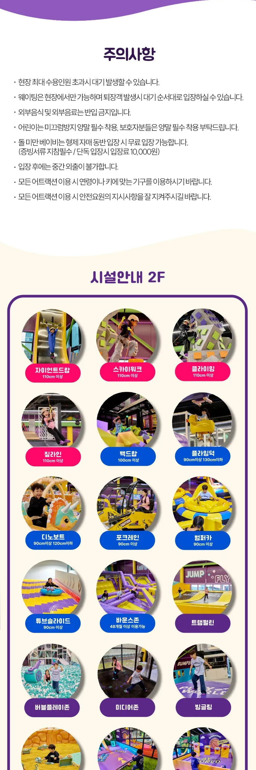 - 모든 어트랙션 이용 시 안전요원의 지시사항을 잘 지켜주시길 바랍니다.
