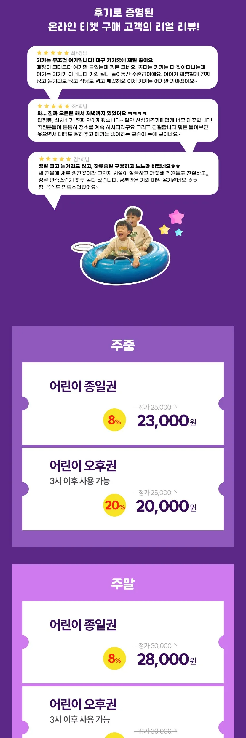 - 오후권 : 오후 3시(15시) 이후 사용 가능 합니다.
