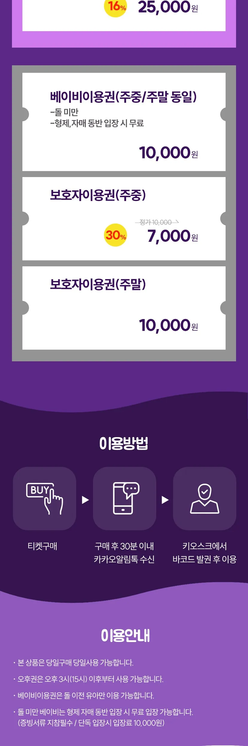 - 베이비이용권 : 돌 미만 유아만 사용 가능합니다.