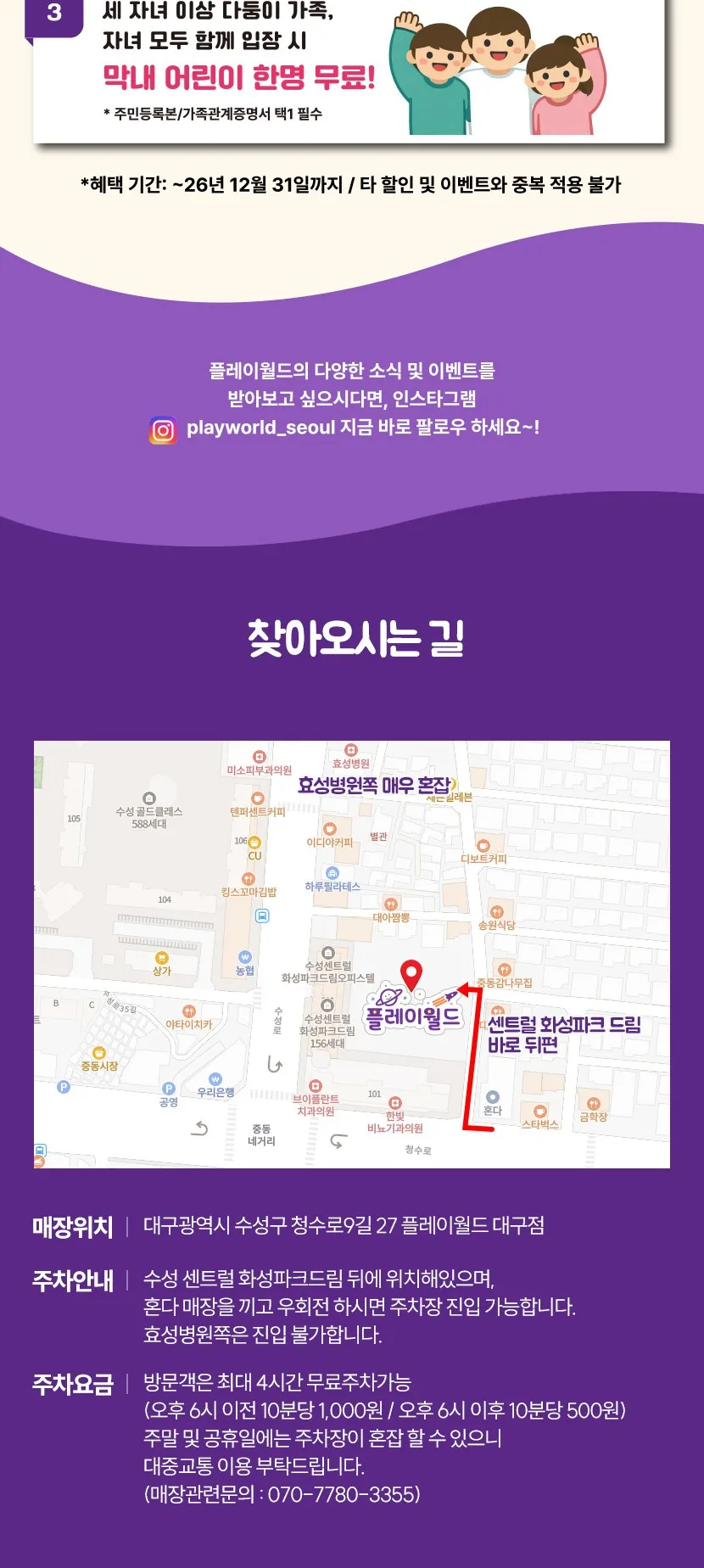 위치 : 대구광역시 수성구 청수로9길 27 플레이월드 대구점