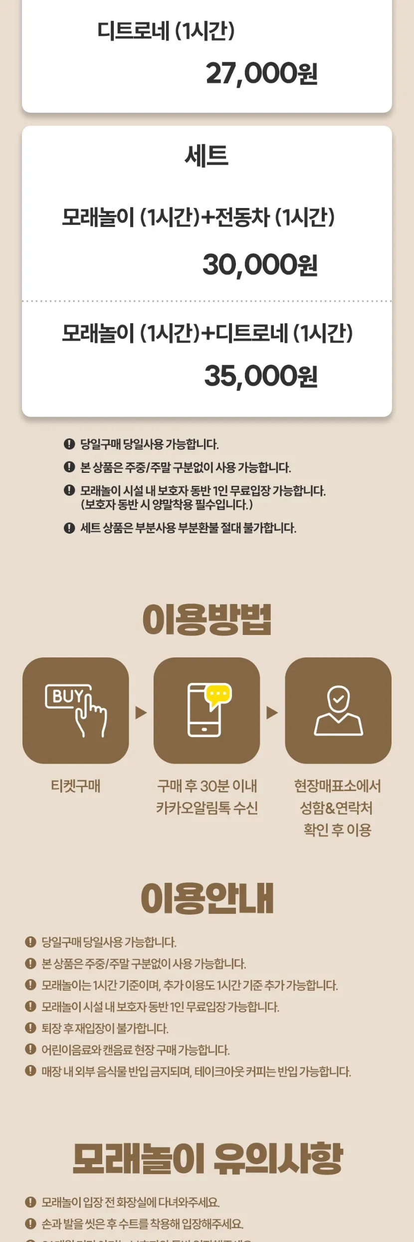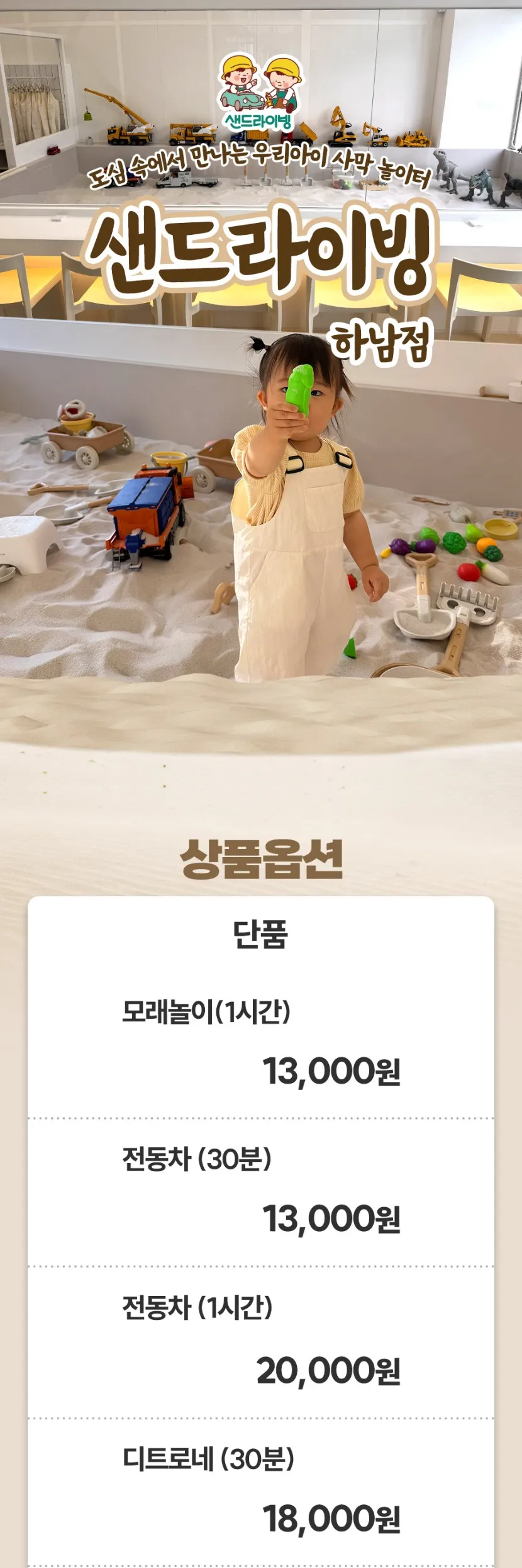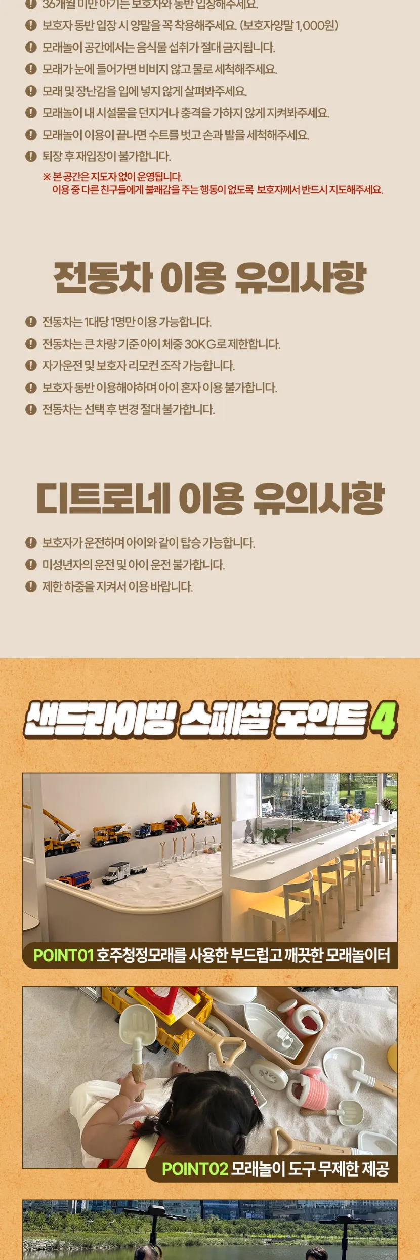 - 모래놀이는 1시간 기준이며, 추가 이용도 1시간 기준으로 추가 가능합니다.
