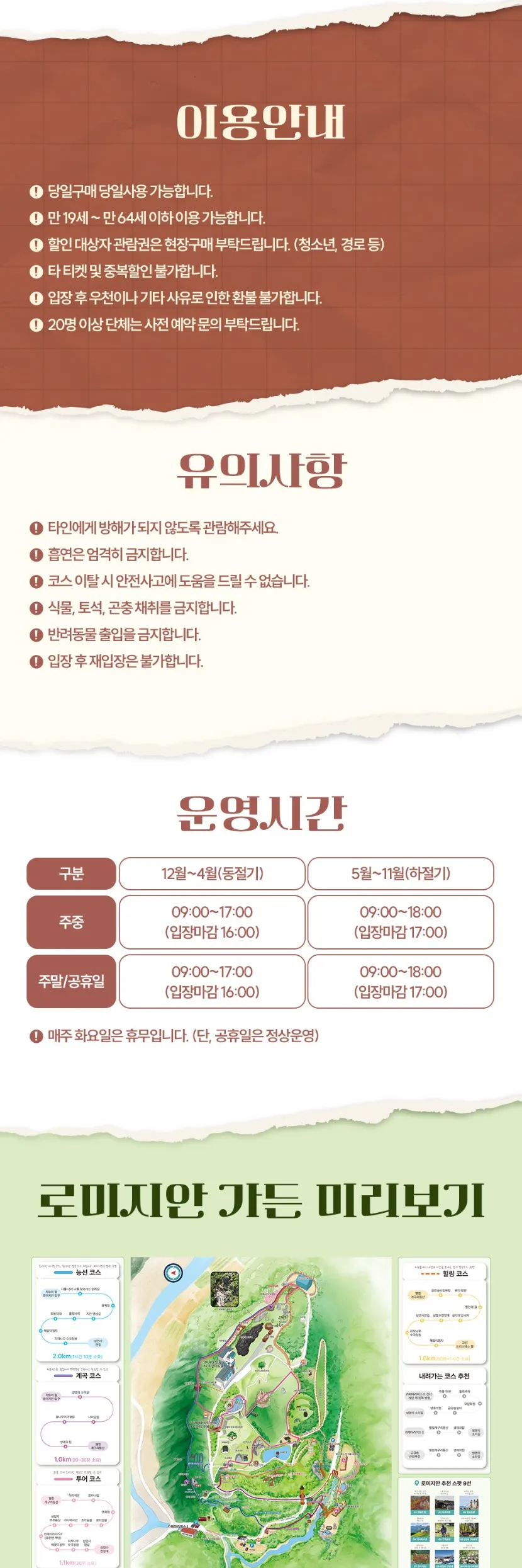 - 입장 후 우천이나 기타 사유로 인한 환불 불가합니다.