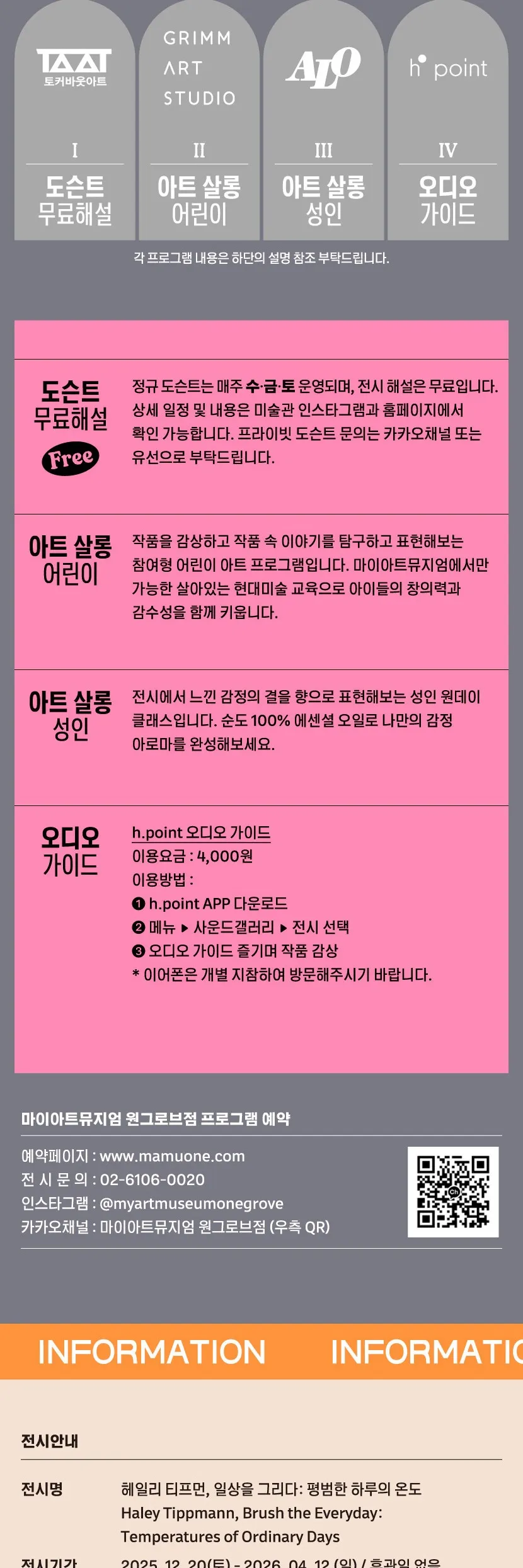 - 전시 및 프로그램의 자세한 정보는 상단의 QR코드 또는 공식 홈페이지를 통해 확인해주시기 바랍니다.