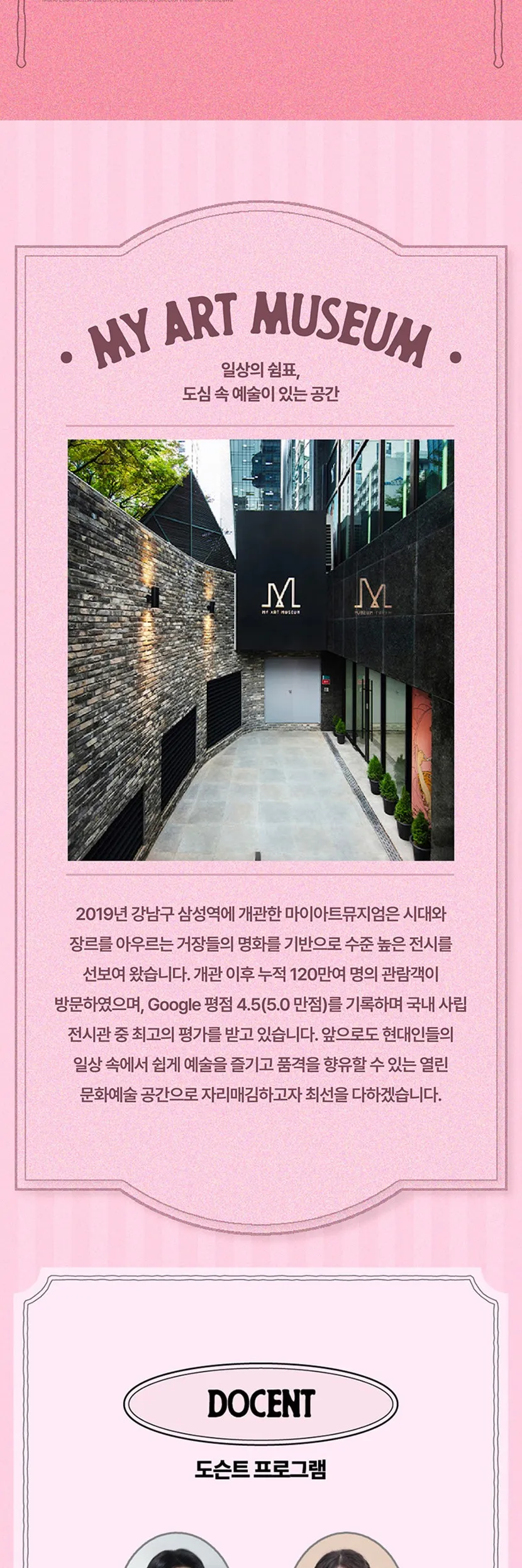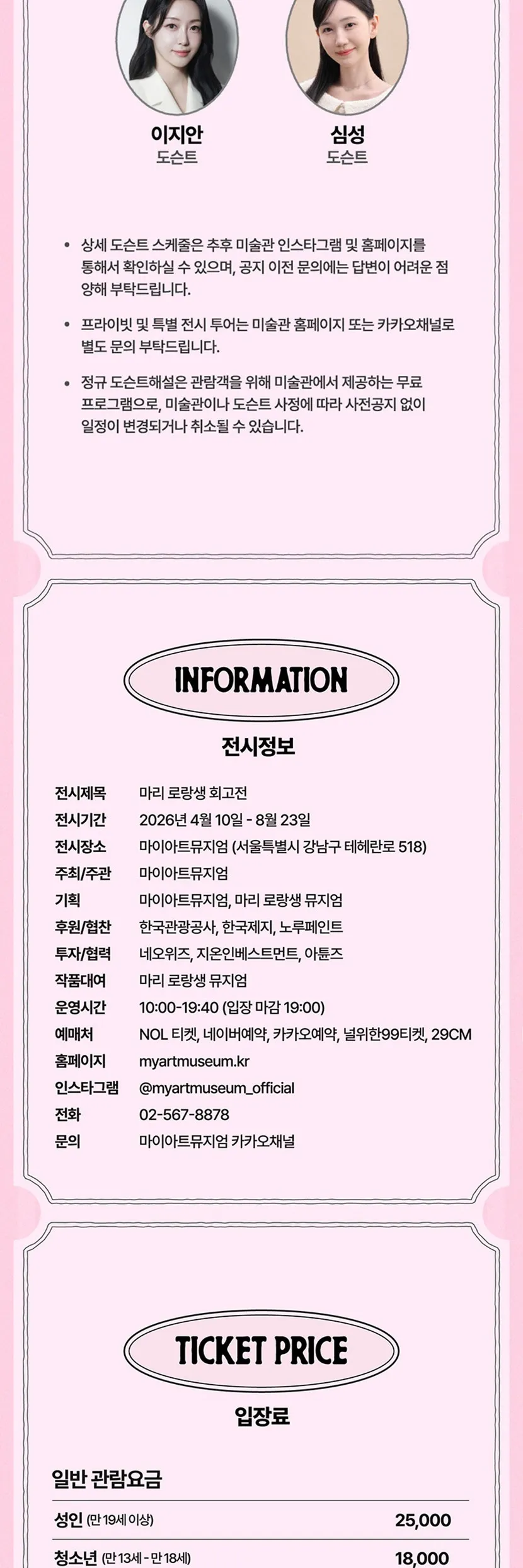 - 전시 및 도슨트 공지사항은 마이아트뮤지엄 인스타그램 및 홈페이지에서 확인하실 수 있습니다.