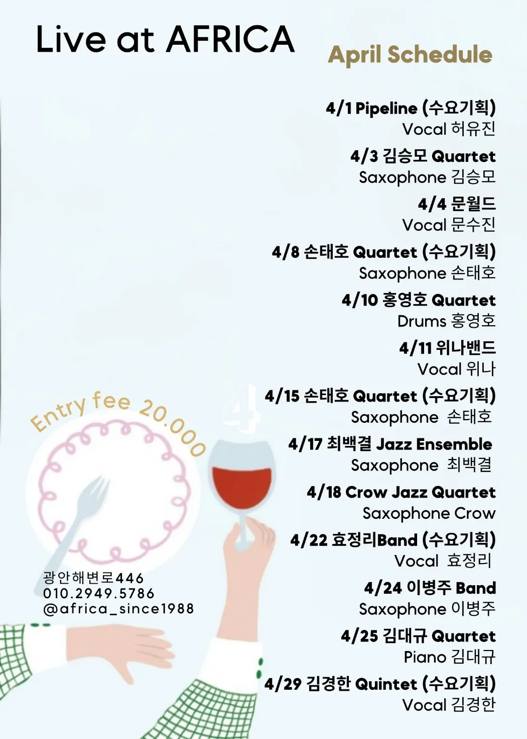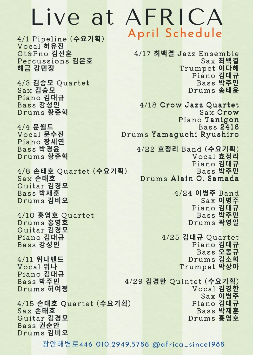 매 회 차 색다른 수준급의 프로 재즈 뮤지션들의 멋진 공연에 함께 하셔서 행복한 시간을 가져 보세요 ^^