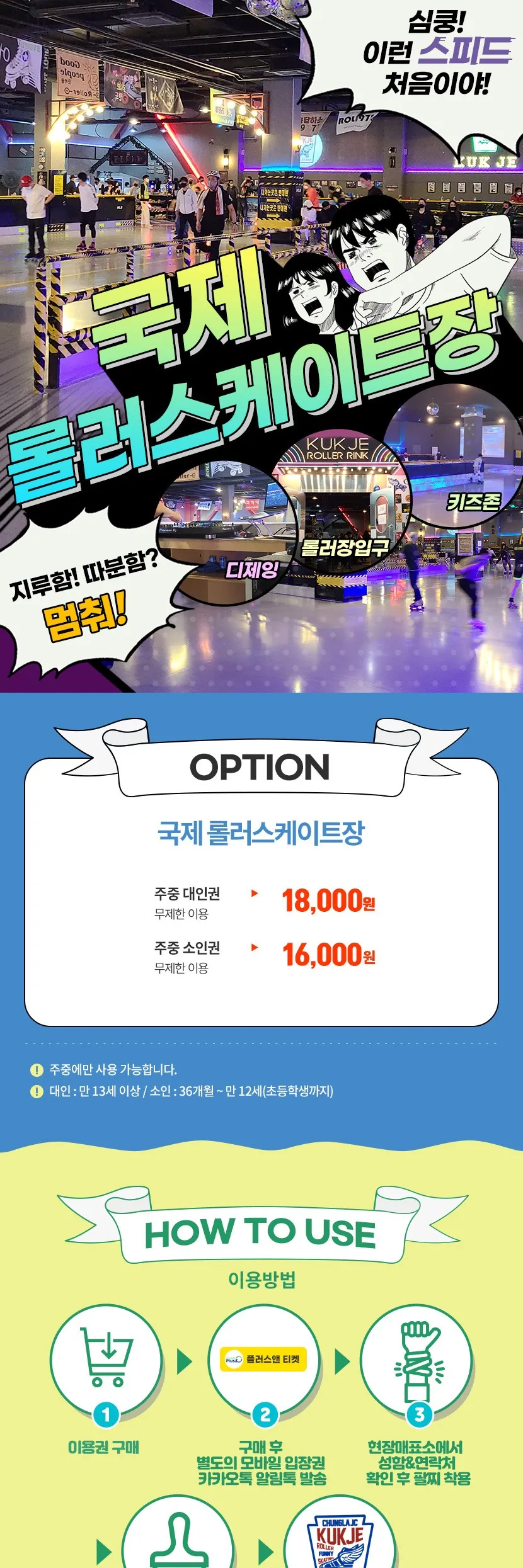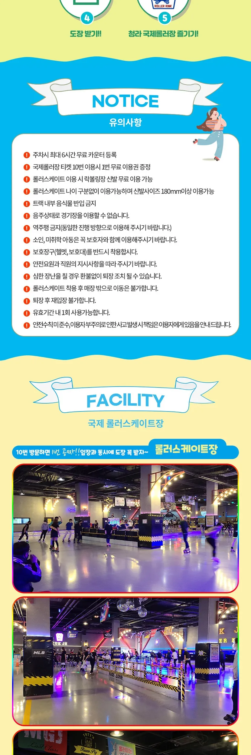 - 롤러스케이트 이용 시 락볼링장 신발 무료 이용 가능합니다.