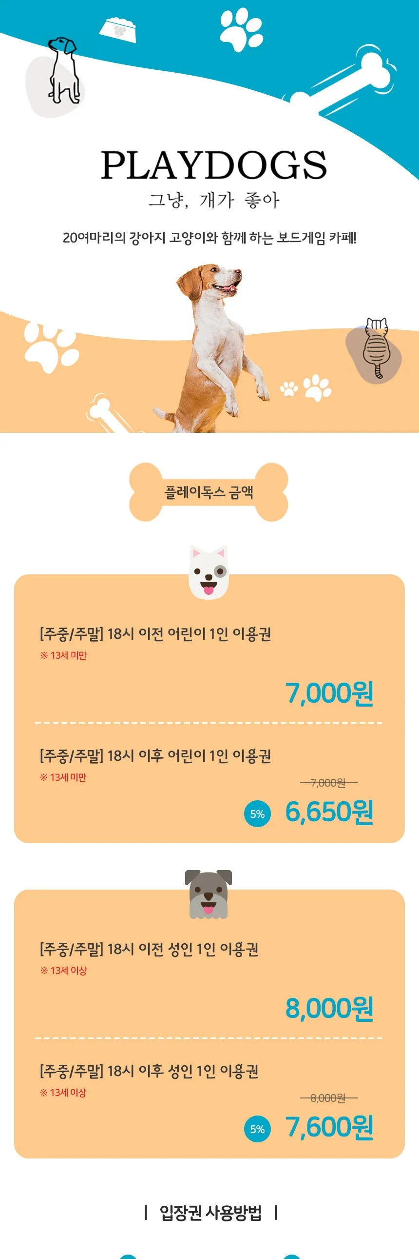 - 대형견 홀의 경우 초등학생부터, 보호자 동반 시에만 입장 가능합니다.