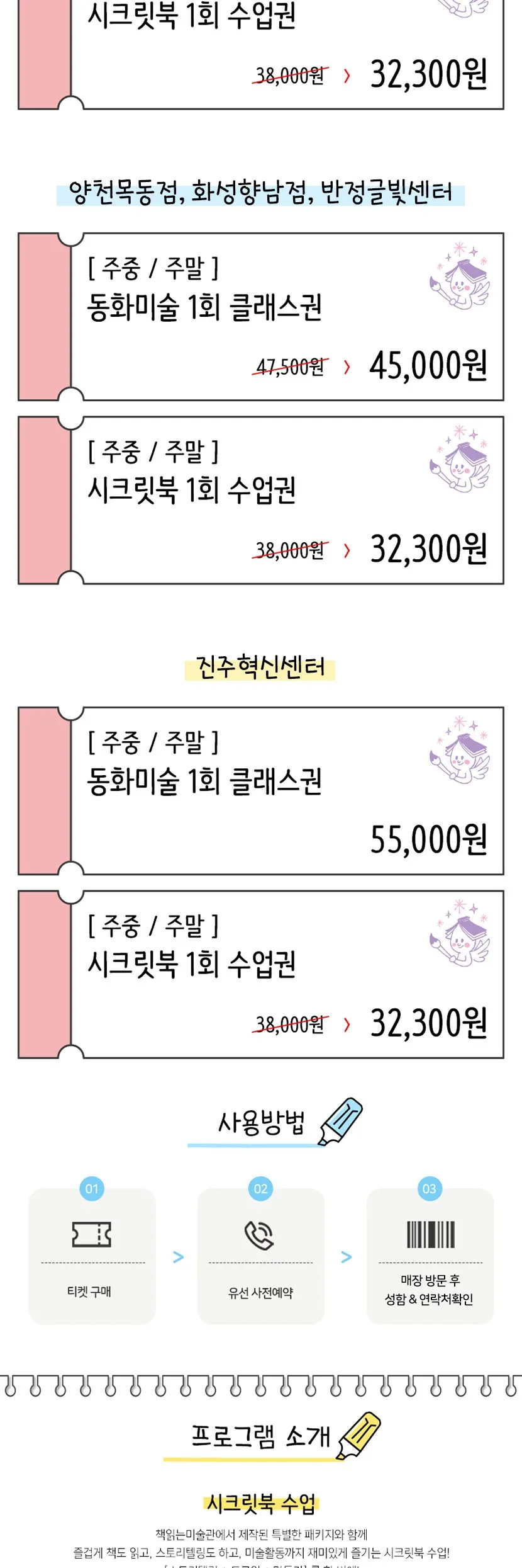- 메인 프로그램 외의 수업은 별도 문의 부탁드립니다.