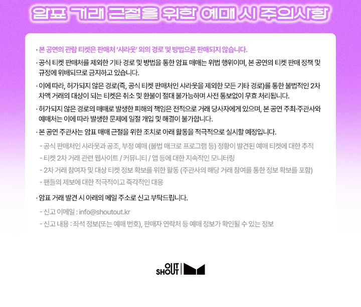 ※ 티켓 결제 및 환불 관련 문의 : SHOUTOUT 고객지원센터