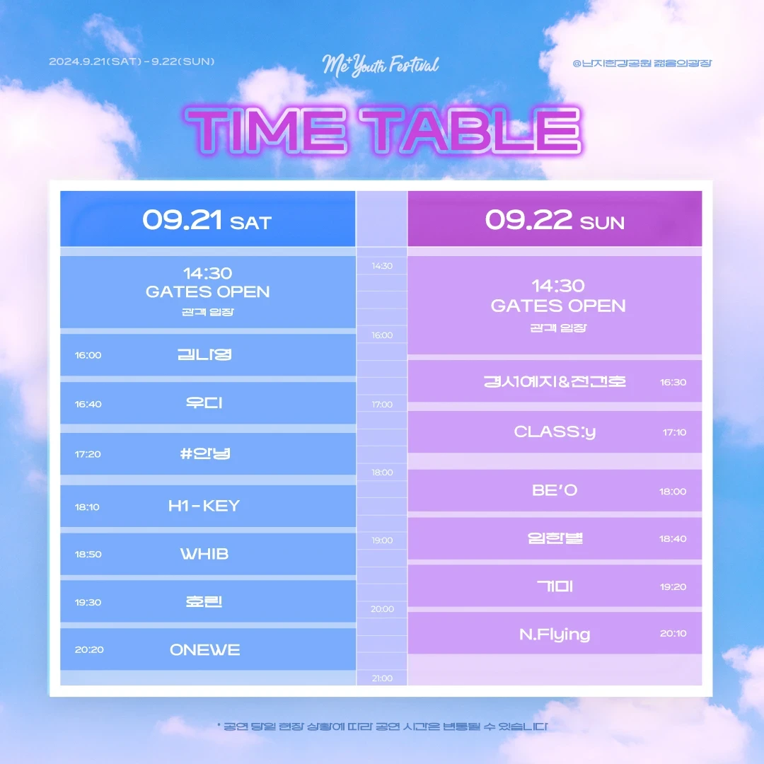 - 공연 타임테이블은 추후 사단법인 청년과미래 공식 인스타그램을 통해 공지될 예정입니다.