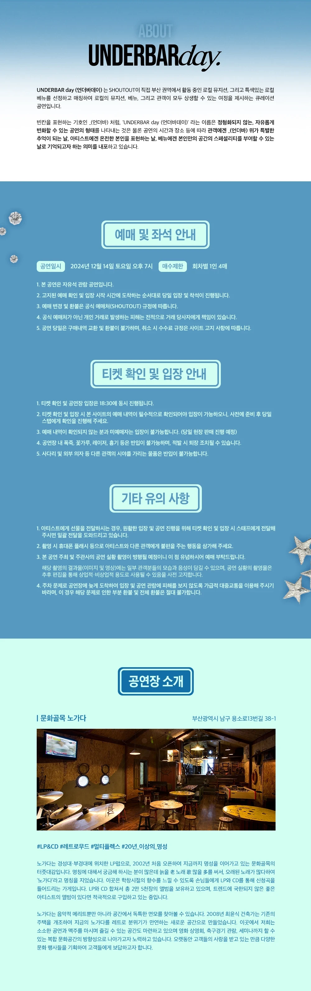 ※ 해당 공연은 아티스트 사정으로 인해 기존 11/16(토) 공연에서 12/14(토)로 연기되었습니다. 기존 예매자분들에게는 별도 연락을 드릴 예정이오니 이 점 참고 부탁드리며, 너른 양해 부탁드리겠습니다.