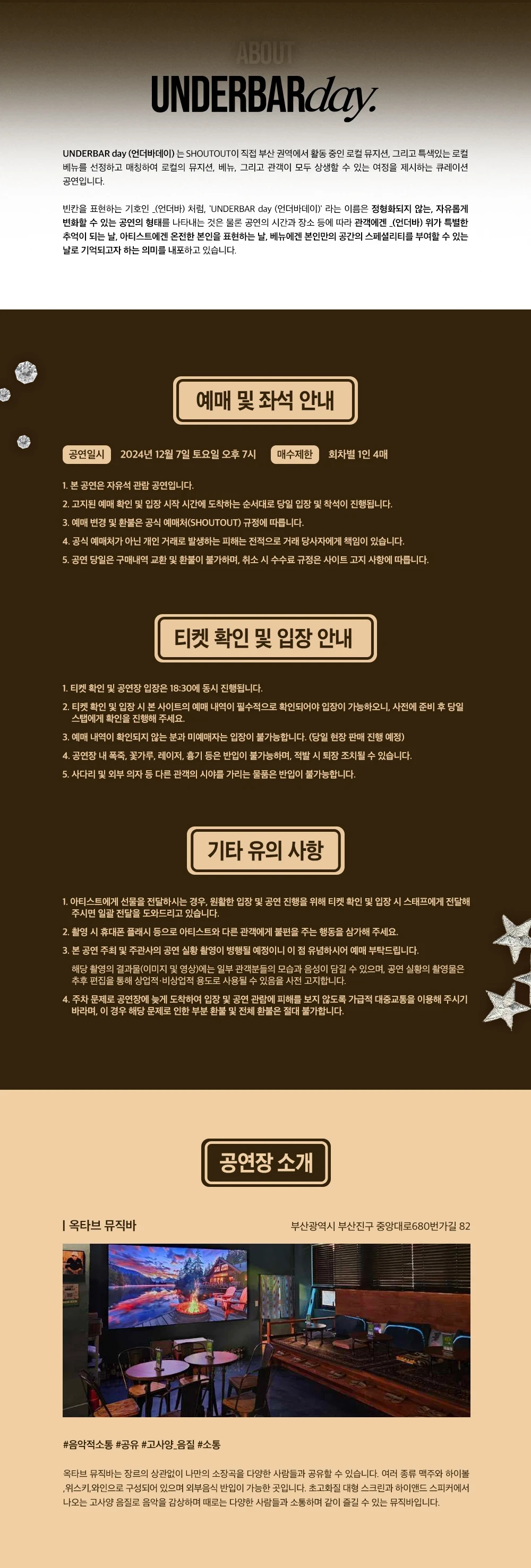 - 공연 당일 티켓 수령 시 SHOUTOUT 내에서 구매한 예매 내역 확인 후 수령이 가능합니다. 원활한 티켓 수령을 위해 예매 내역서를 필히 지참해 주세요.