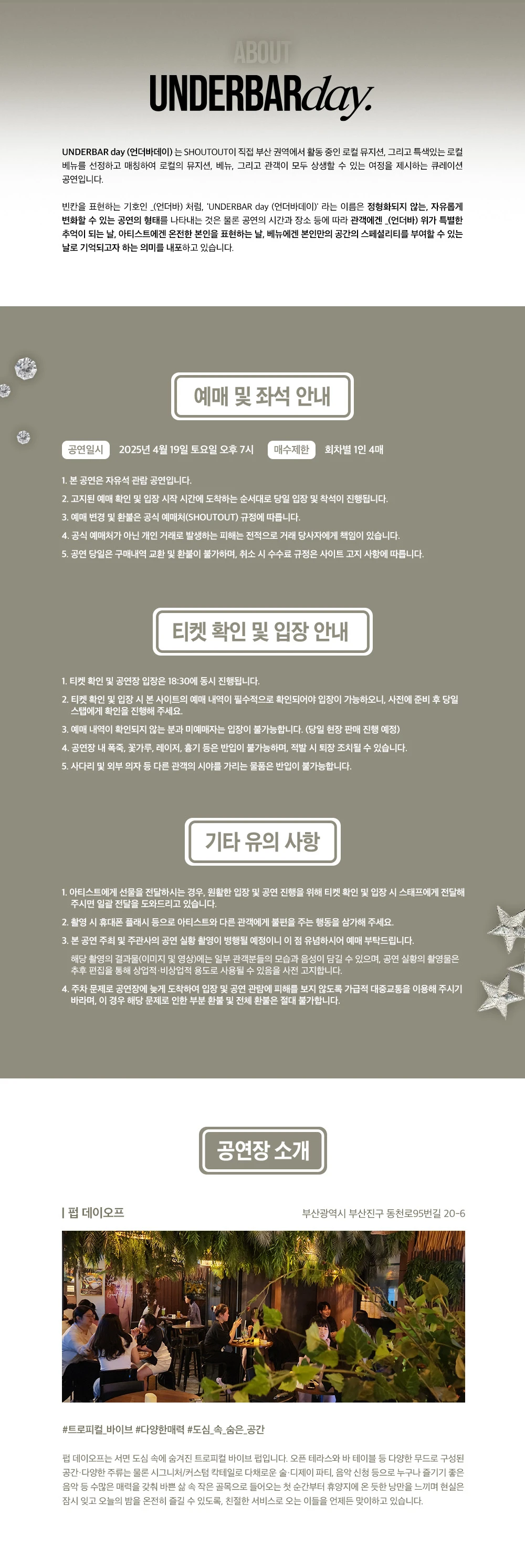 ┕ 공연장 입장은 30분 전부터 가능하며, 티켓 구매 내역 확인과 입장이 동시에 이루어질 예정입니다.
