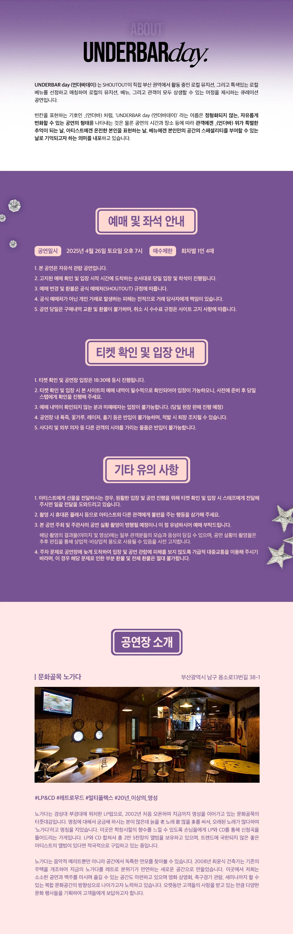 ┕ 공연장 입장은 30분 전부터 가능하며, 티켓 구매 내역 확인과 입장이 동시에 이루어질 예정입니다.