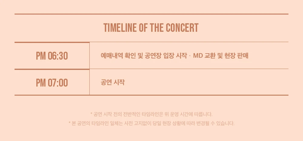 - 본 공연은 자유석 공연으로, 아래 고지된 예매 확인 및 입장 시간에 도착하는 순서대로 당일 입장 및 착석이 진행됩니다.