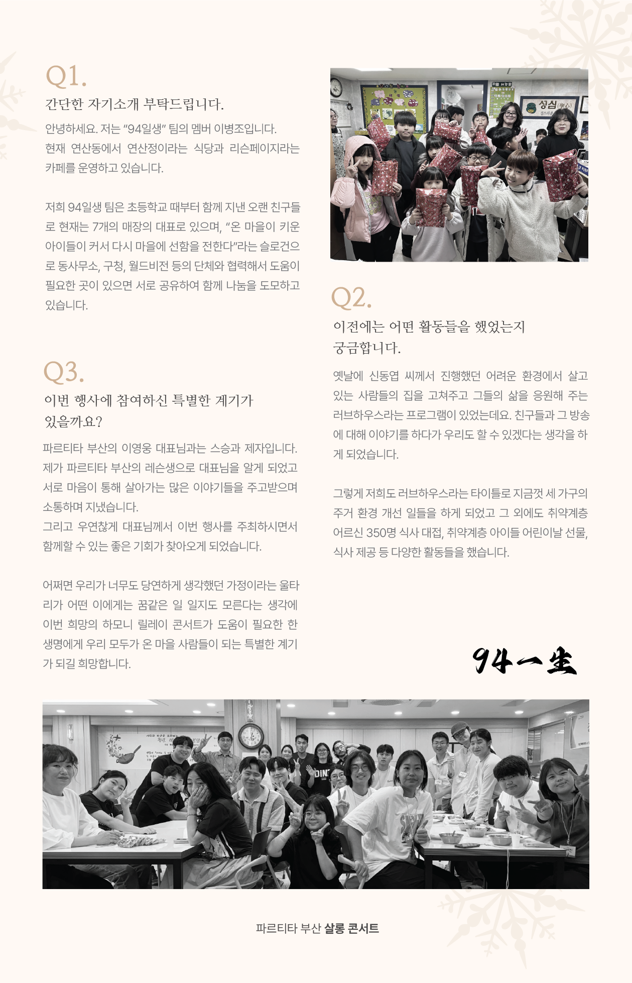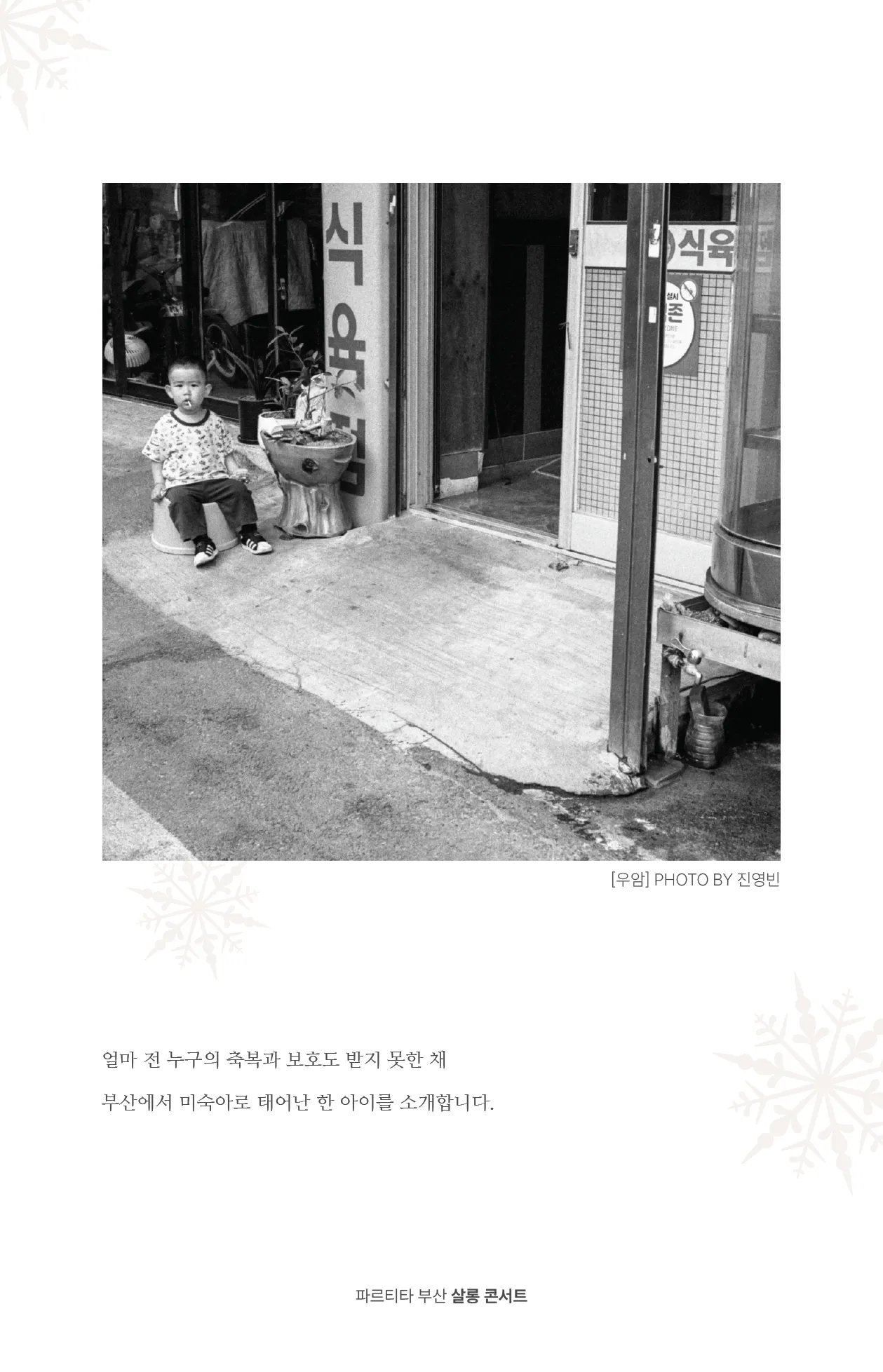 * 이번 공연은 월드비전과 구사일생이 함께하는 공연으로 어려운 환경의 미숙아를 돕기 위하여 하나의 공연에 한하여 5천원씩 모금행사를 진행합니다. 따뜻한 마음으로 참여 부탁드립니다.